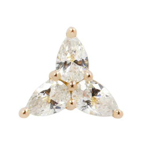 Sweet + lovable, you can never go wrong with these three pear-shaped CZ’s. The gemstones we feature are specially chosen to be the perfect cut and quality to illuminate your jewelry to a whole other level. 3 little pears fits perfectly in the tragus, lobe, conch, and rook. Adorn with your other jewelry to create a glittering focal point!